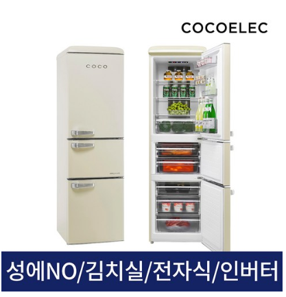 [COCO] 코코일렉 간냉식 레트로 디자인 냉장고 + 소형 김치 275L CKB28CT