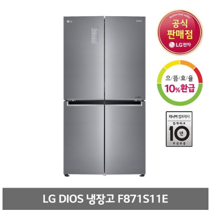 LG디오스 870L 4도어 냉장고 F871S11E (으뜸효율10%환급대상)